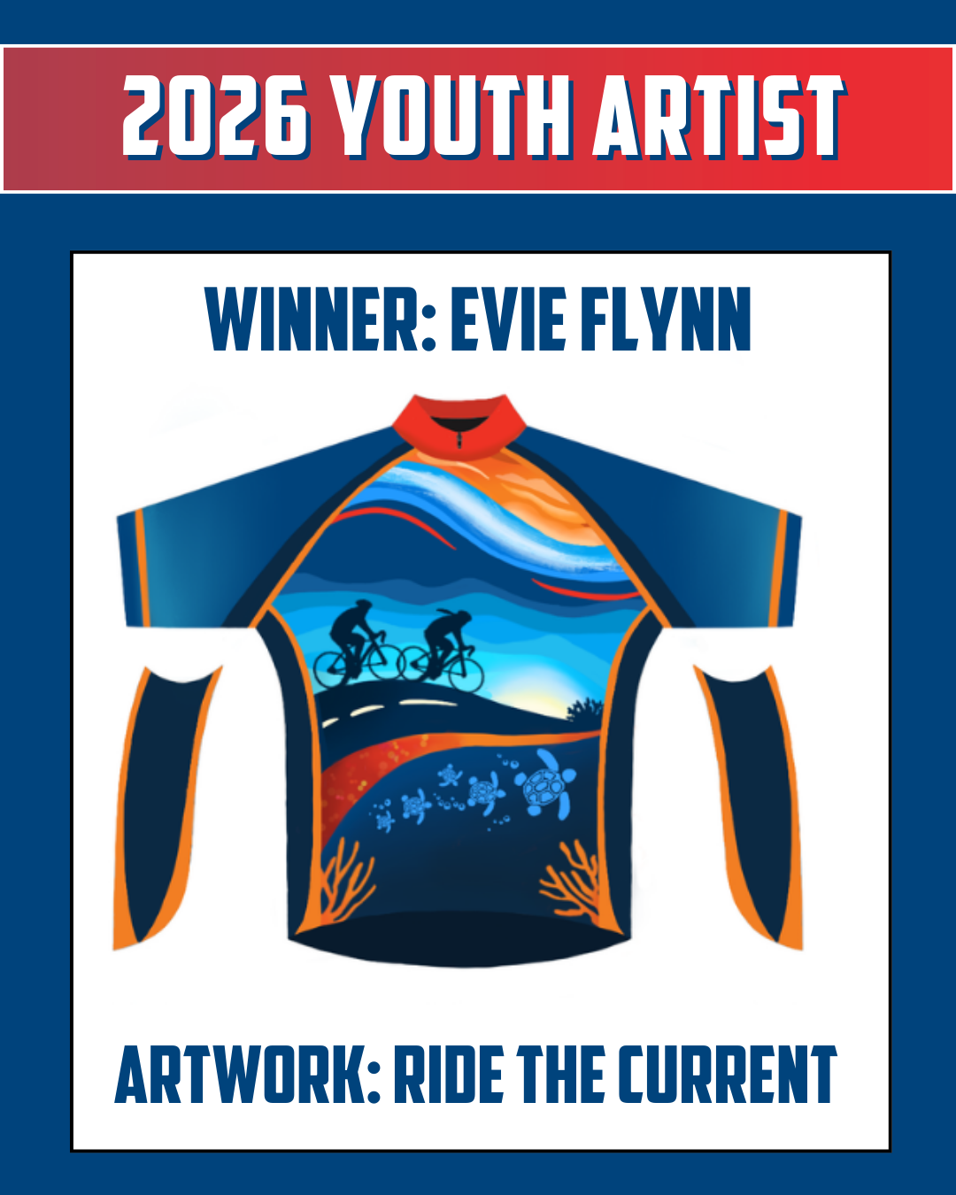 Following a record-breaking public vote, Evelyn's vibrant artwork, "Ride the Current," will be featured on hundreds of official BMA River 2 Reef Ride jerseys this August.
